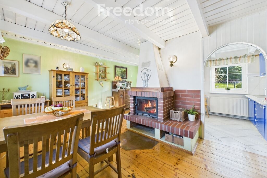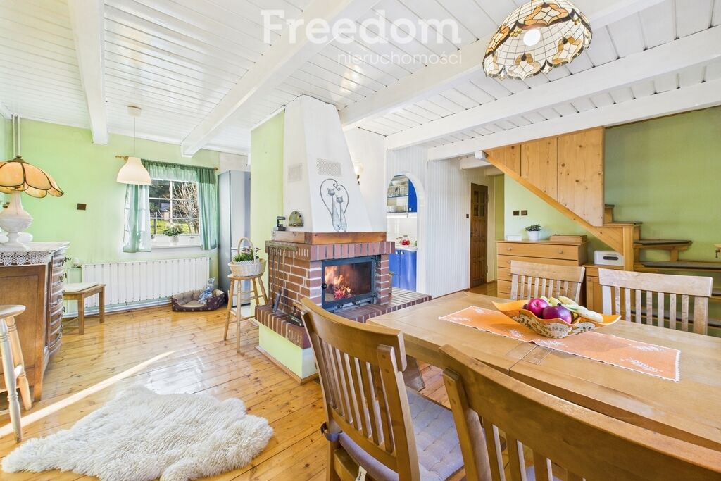 W środkowej części salonu znajduje się kominek. Okna od wschodniej