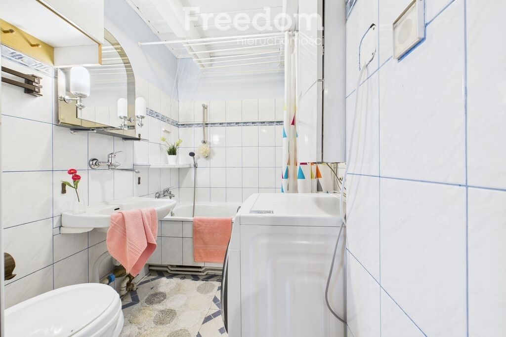 Na wprost od wejścia łazienka (3,6m2) z wanną, a po lewej jasny