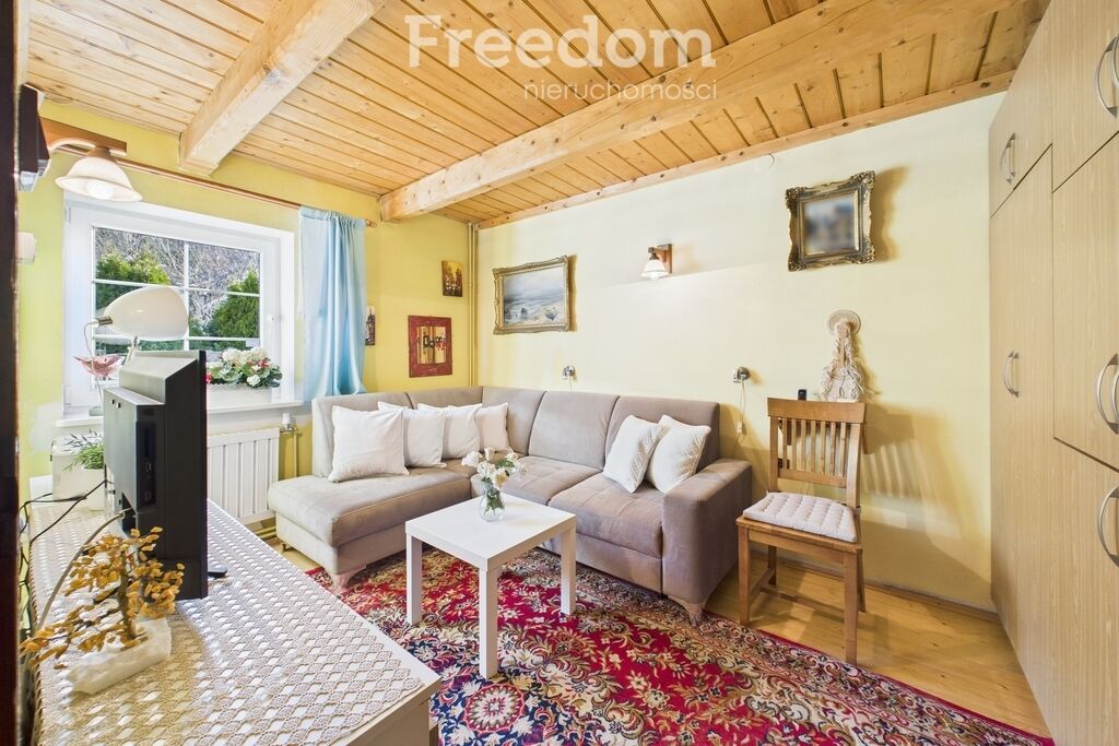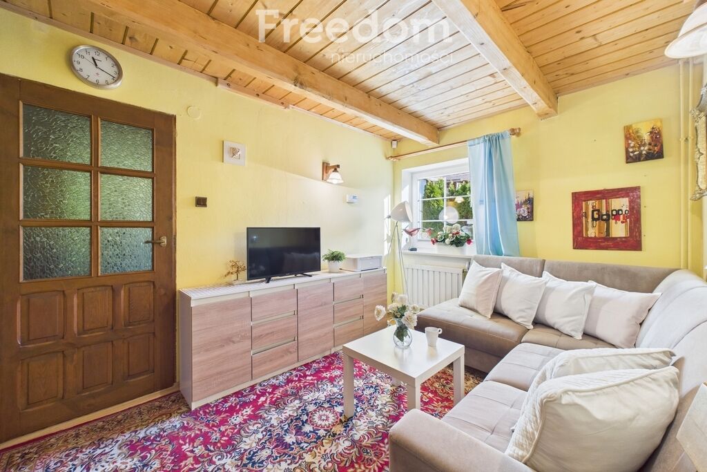 wnętrza tego domu są czyste i zadbane. Drewniane sufity malowane na